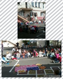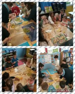 Comme l’année dernière, nous avons renouvelé nos rencontres multi-âges pour réaliser un défi par période. Pour la première période, les classes de ce1B de Céline H., de MS de Dorothée et de CM2 de Sophie P. se sont retrouvées le jeudi 17 octobre 2024 pour confectionner des scones (gâteaux anglais), des pancakes (crêpes américaines) et des brochettes de fruits. Grâce à ces ateliers, les élèves ont appris à lire, appliquer des recettes et à identifier, nommer, connaître l’origine de certains fruits de saison: la mandarine, la banane, la pomme, le raisin, la prune rose … Les petits ont pu compter sur les grands pour les aider. Nous nous sommes retrouvés sur la cour en fin de journée pour une dégustation partagée.