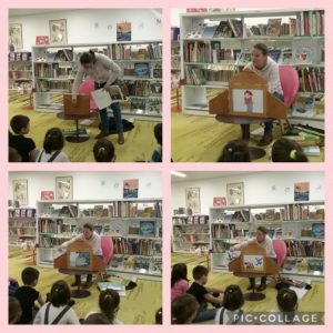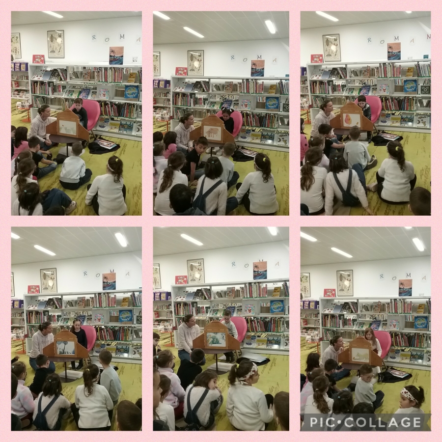 La classe des ce1B s’est rendue à la médiathèque le 28 novembre 2024 pour une séance avec un parcours littéraire autour du « Kamishibaï ». Pauline, l’animatrice jeunesse de la bibliothèque a expliqué rapidement l’origine du Kamishibaï : c’est un genre narratif provenant du Japon, sorte de petit théâtre ambulant pour raconter des histoires en faisant défiler des illustrations. Ce divertissement a disparu avec l’apparition de la télévision, les personnes ne se déplaçaient plus.