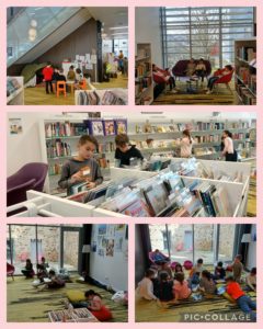 Nous sommes revenus à la médiathèque en visite libre le mardi 18 mars 2025. En demi-groupe, nous avons appris à nous repérer dans les différents espaces de la bibliothèque et nous avons pris le temps d’écouter une histoire, de choisir et lire des livres.