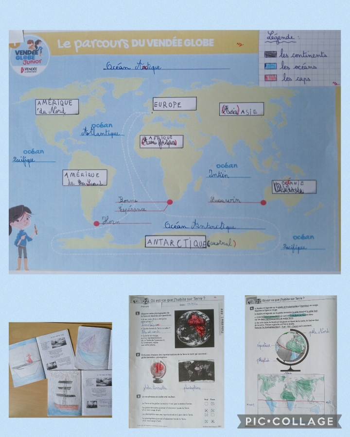 Ce projet a permis aux élèves d’apprendre à se repérer sur une carte du monde, situer la France, nommer les différents continents et océans, apprendre du vocabulaire lié au monde marin, sans oublier leur blason « bateau » accroché au-dessus de leur porte-manteau dans le couloir. Et bientôt, la rédaction collective d’une histoire à écrire intitulée « le roi de la mer » et qui permettra de sensibiliser les élèves à la pollution des océans.