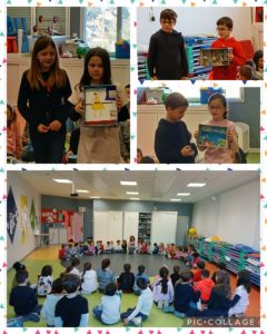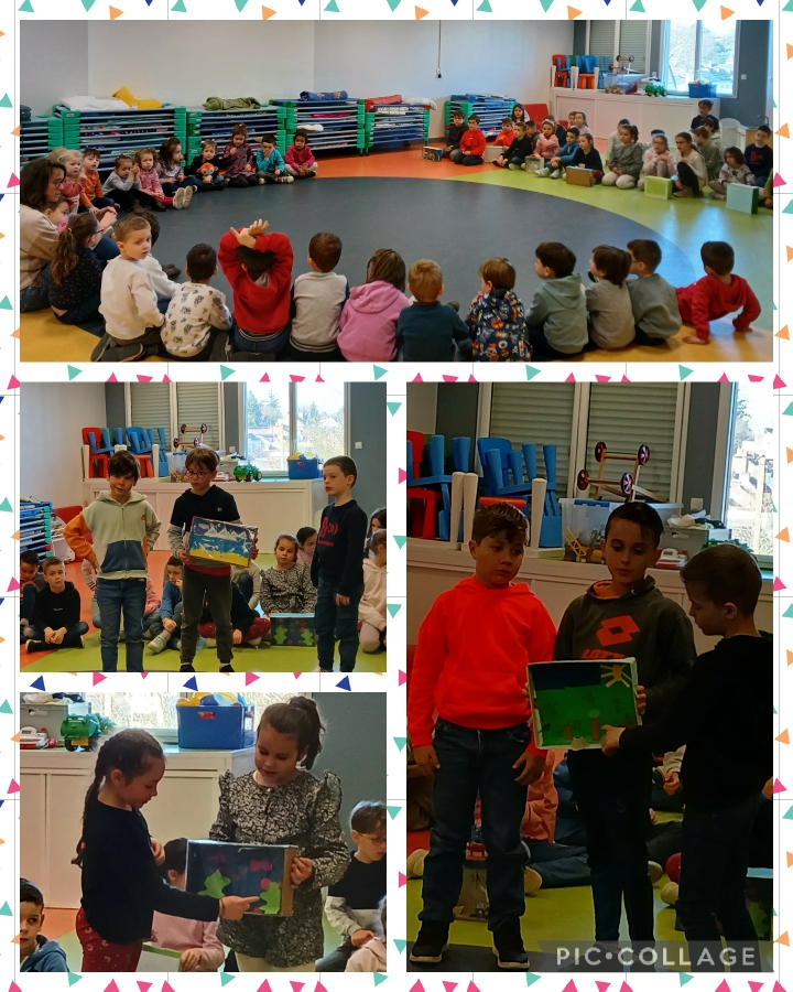 Ensuite, ils ont présenté leurs chefs-d’oeuvre lors de leur atelier multi-âges à l’école avec la classe de Dorothée : c’était un temps de langage et d’écoute de chacun.