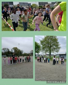 Le vendredi 4 avril 2025, les élèves de ce1 et ce2 ont pris le chemin du complexe sportif de Cross en car. L’après-midi, ils ont commencé par une course (1 000 mètres pour les ce1) puis ils ont participé à des ateliers organisés par les lycéens de Gabriel Deshayes : ils ont participé à une balle au camp et au jeu de l’épervier.