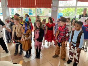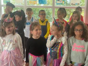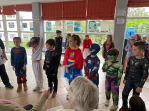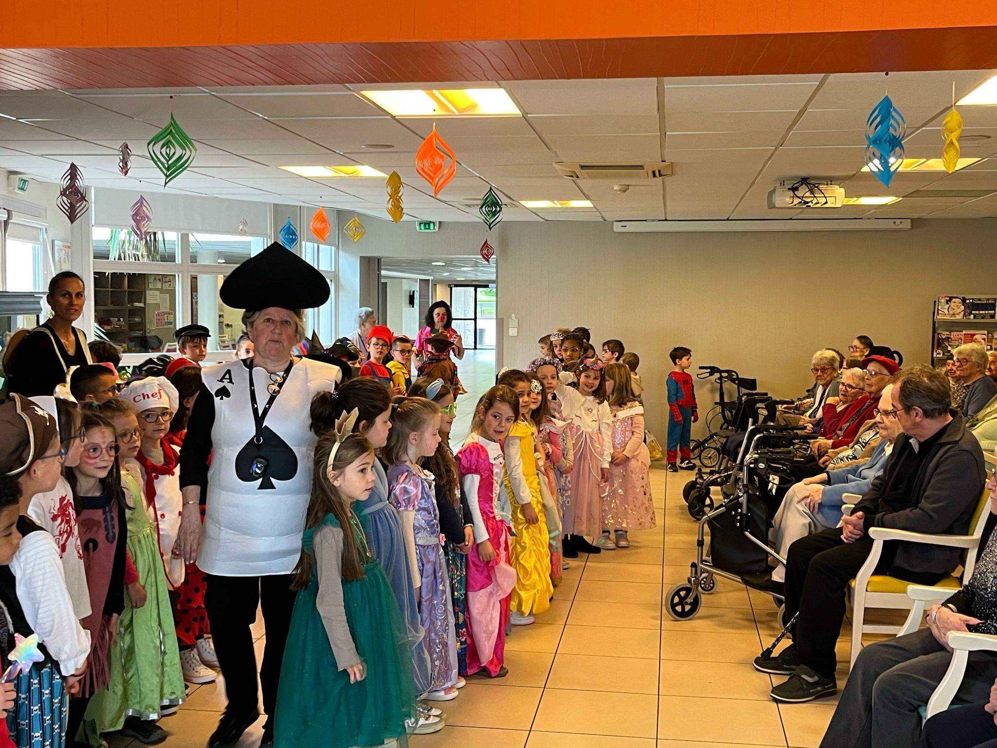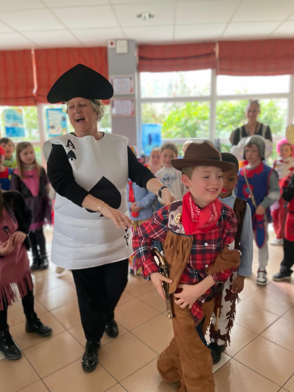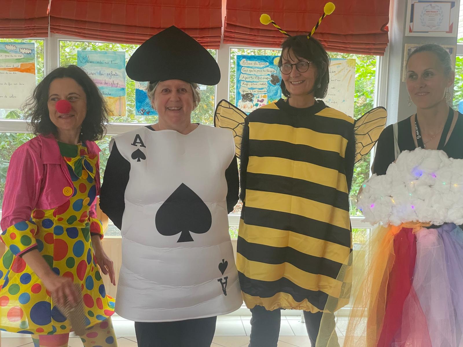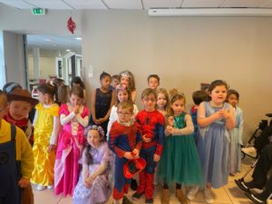 - Nous sommes arrivés costumés toute la journée pour faire la fête : il y avait des princesses, des Spiderman, des chevaliers, un beau cuisinier, des pirates, un sportif, des sorcières et un vampire, des super-héros, un chaperons rouge…