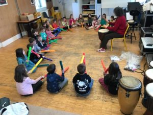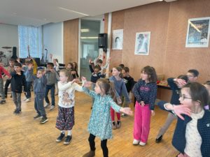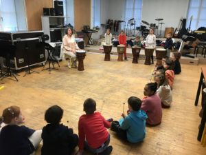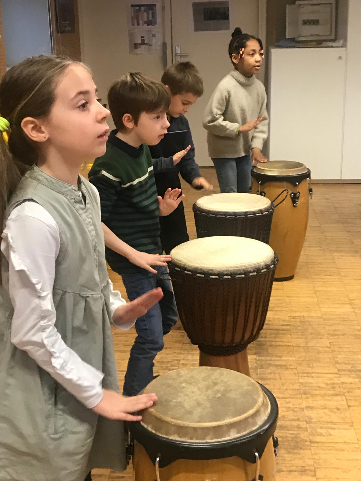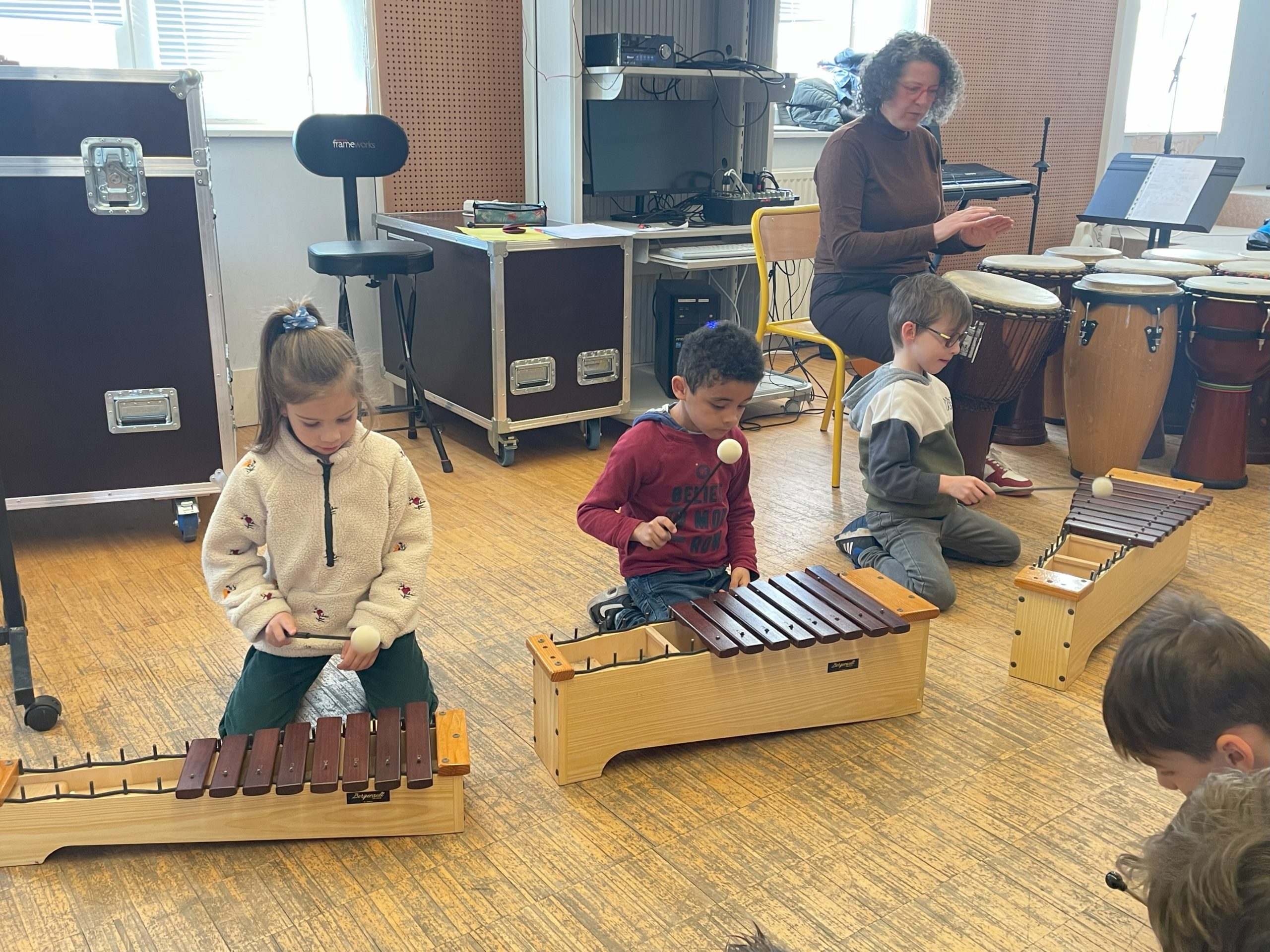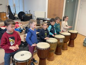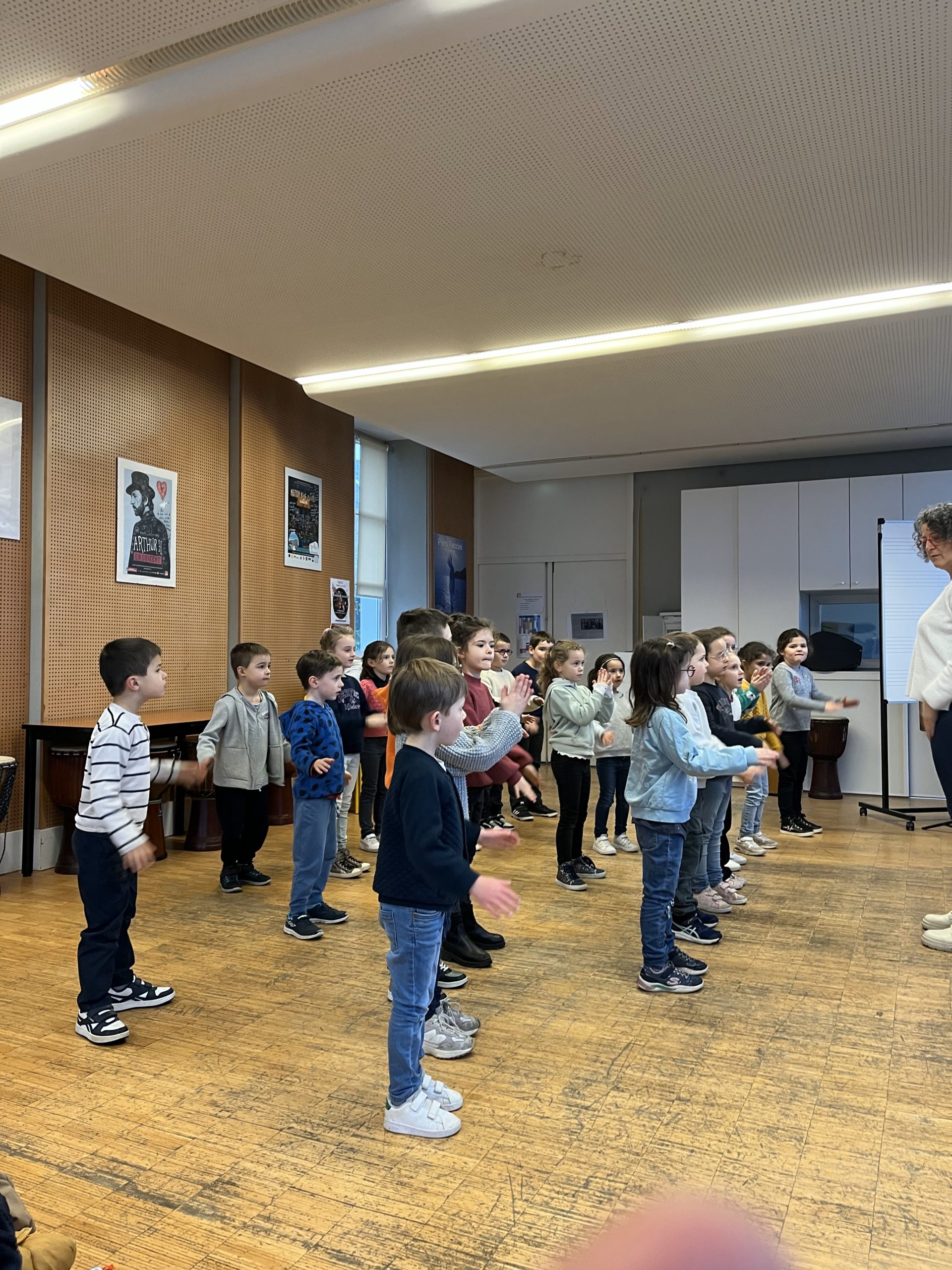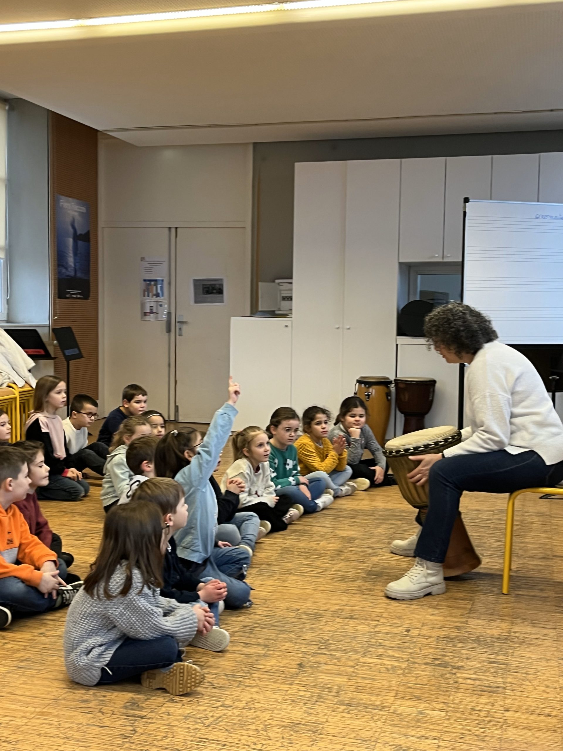 Durant 10 séances, les GS/CP, CPB, CP/CE1C se sont rendus à l’école de musique pour tester les percussions à travers leur corps et par l’utilisation de nombreux instruments.