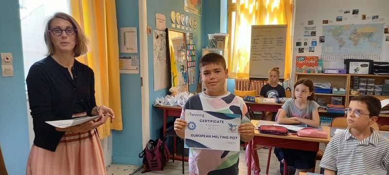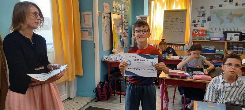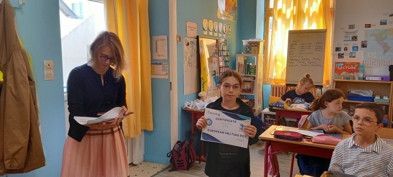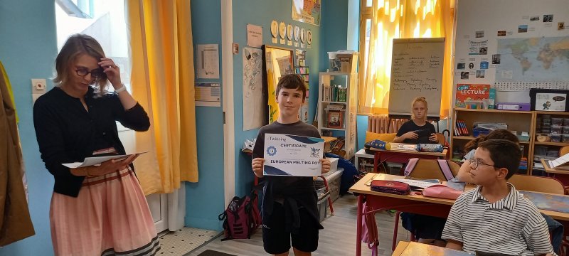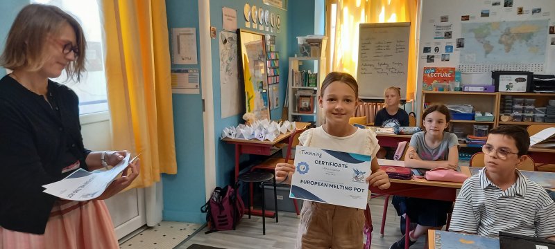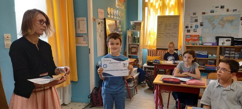 Le vendredi 13 juin, les cm1 B ont reçu un certificat de participation au projet eTwinining « European Melting Pot ». Depuis septembre les CM1B ont réalisé des activités collaboratives avec d’autres écoles en Europe (Grèce, Espagne, Italie, Turquie, Chypre, Croatie…)