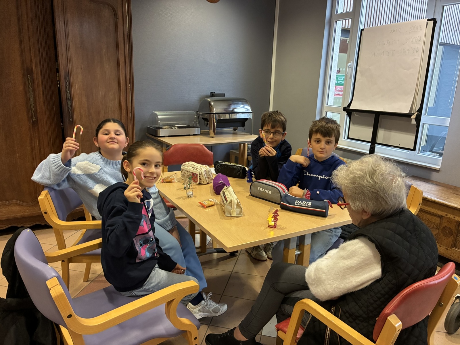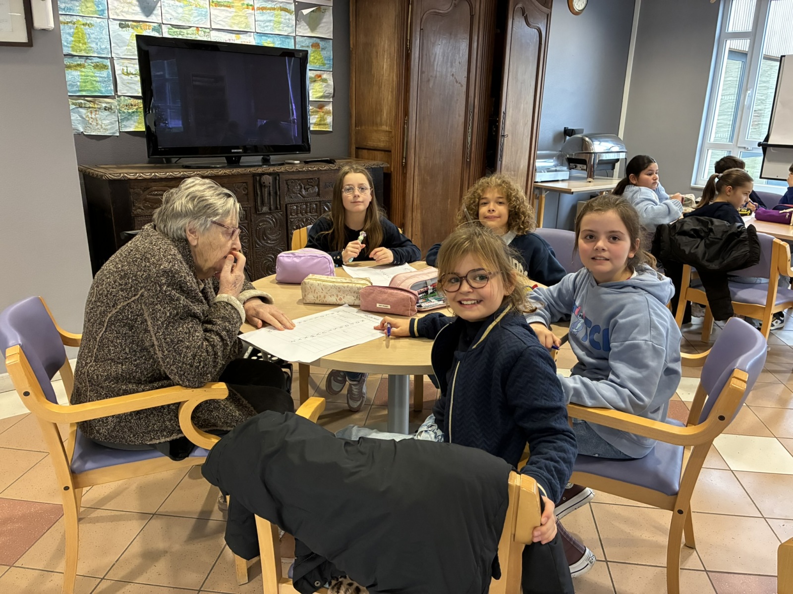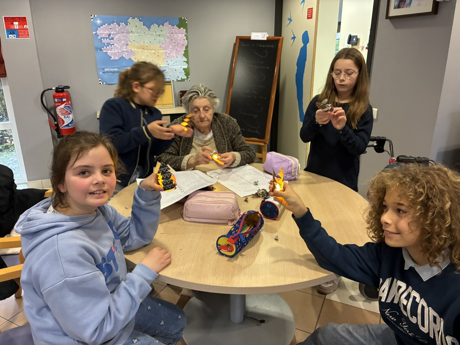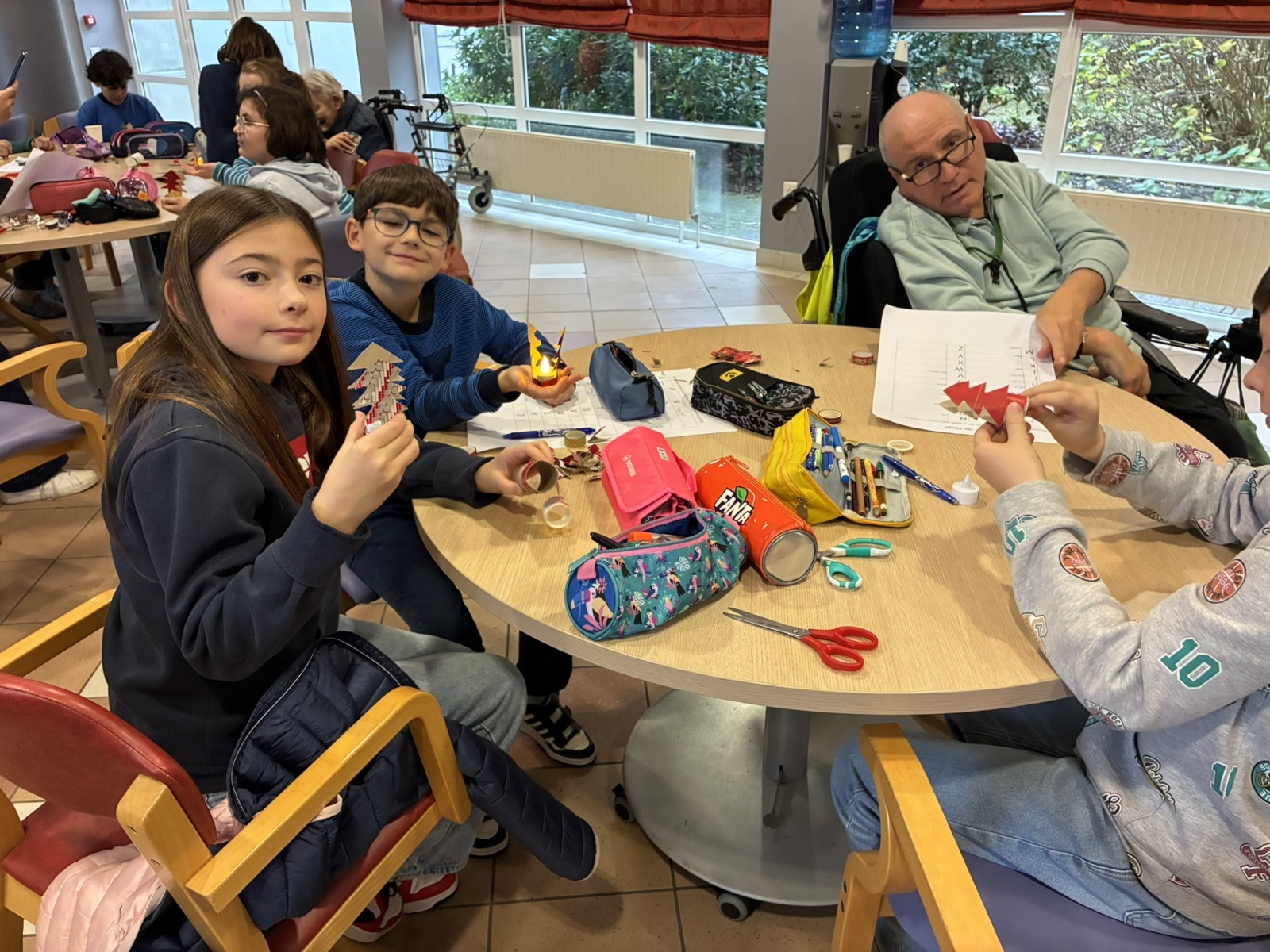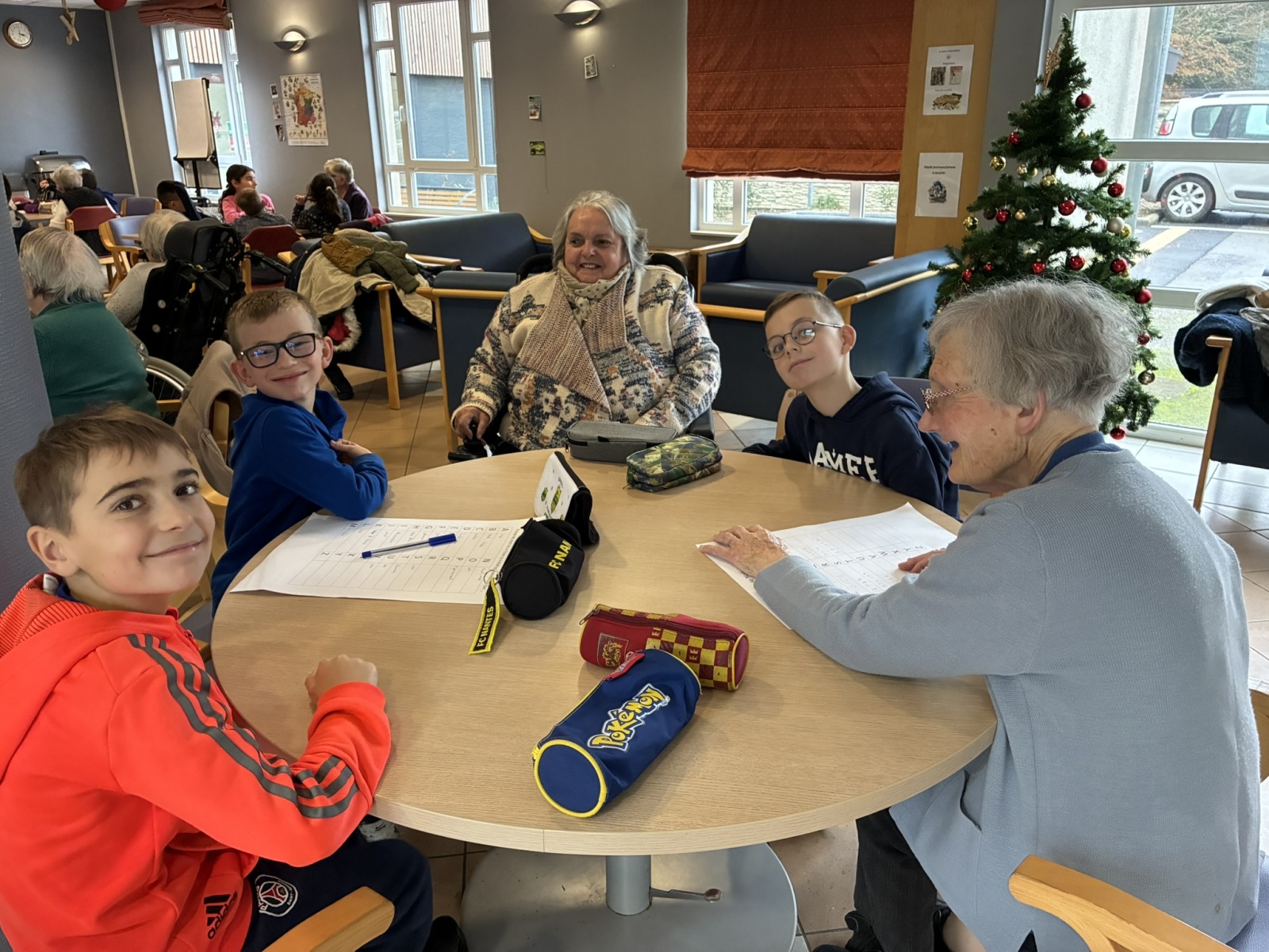 Comme à chaque période, c’est avec grand plaisir que les CM1B ont rendu visite aux résidents du Prieuré dans le cadre du projet intergénérationnel. Le thème de Noël était au programme. Résidents et élèves de CM1b étaient répartis en petits groupes pour chercher des mots à partir d’un abécédaire sur le thème de Noël et de l’hiver. Ce fut l’occasion pour les personnes âgées de partager leurs souvenirs de Noël lorsqu’ils étaient enfants. Chacun a ensuite confectionné un photophore pour décorer la maison.