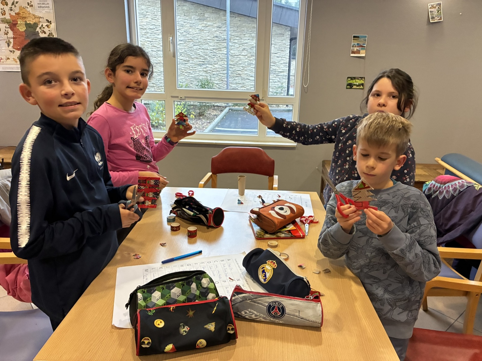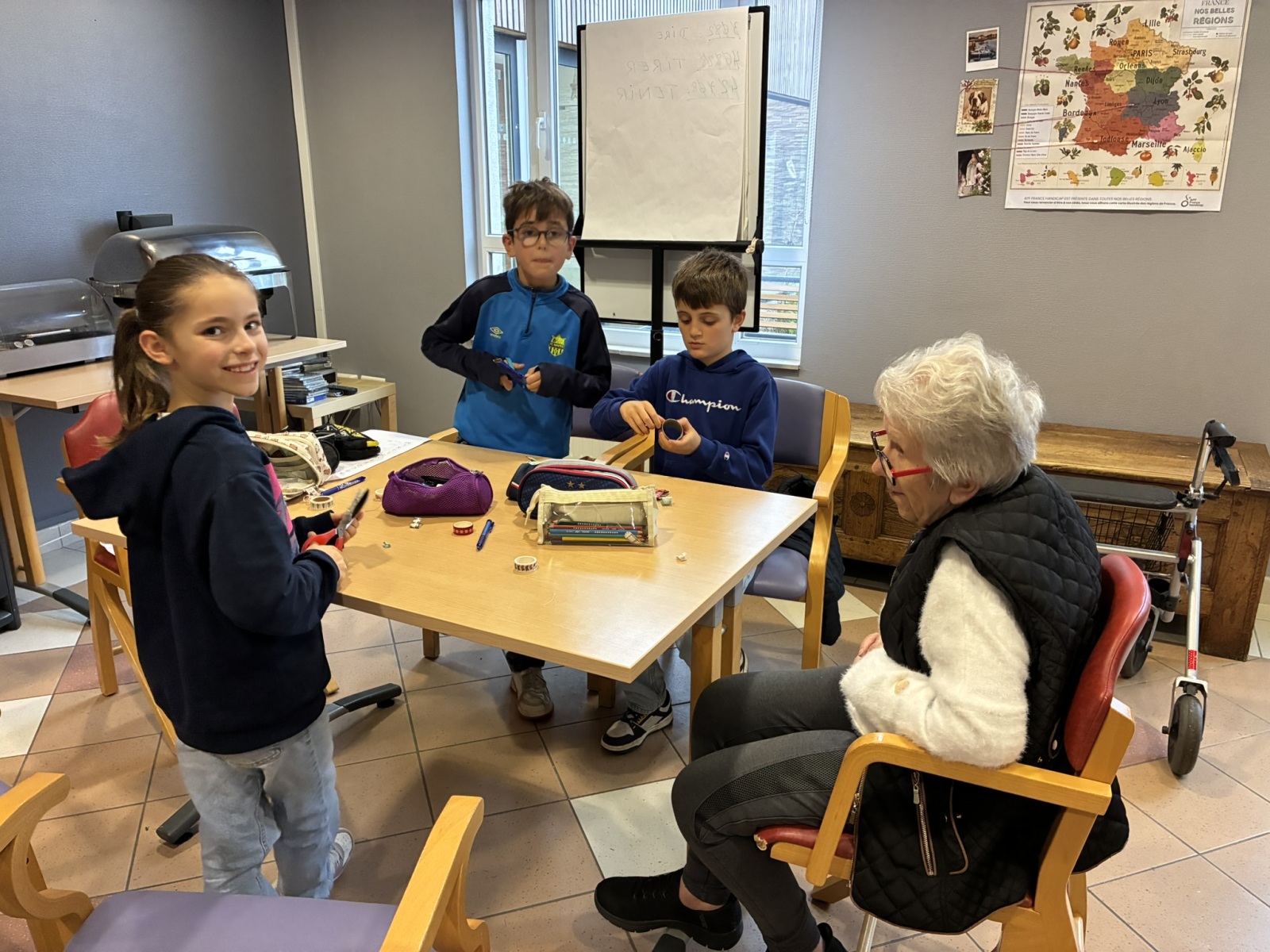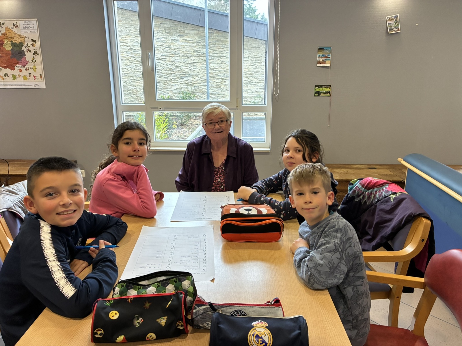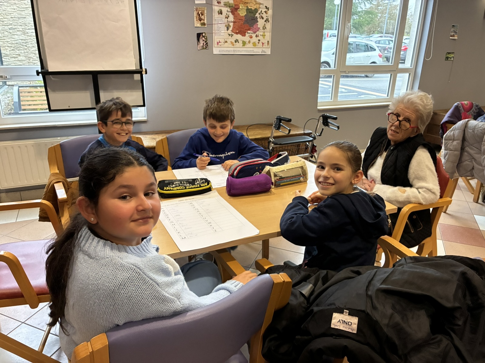 Comme à chaque période, c’est avec grand plaisir que les CM1B ont rendu visite aux résidents du Prieuré dans le cadre du projet intergénérationnel. Le thème de Noël était au programme. Résidents et élèves de CM1b étaient répartis en petits groupes pour chercher des mots à partir d’un abécédaire sur le thème de Noël et de l’hiver. Ce fut l’occasion pour les personnes âgées de partager leurs souvenirs de Noël lorsqu’ils étaient enfants. Chacun a ensuite confectionné un photophore pour décorer la maison.