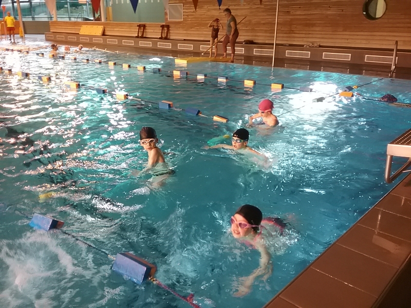 Les élèves de ce1 B sont allés à la piscine de la Hirtais du lundi 24 novembre au vendredi 5 décembre 2025. Ils ont bénéficié de 8 séances pour apprendre à nager en sécurité. Les maitres-nageurs ont proposé des parcours variés afin que les enfants puissent évoluer et prendre confiance en eux, ce qui a permis de belles réussites. Au fil des séances le plaisir s’est installé, et ils ont appris à entrer dans l’eau en sautant du plongeoir ou en glissant sur le toboggan, passer sous des lignes d’eau en eau profonde, aller chercher des anneaux au fond de l’eau … Et le plus difficile, était de réussir à nager sur le dos et/ou sur le ventre sur toute la longueur du grand bassin. Pour la dernière séance, les enfants ont passé leur test et ils ont eu la chance de pouvoir faire la descente du grand toboggan de la piscine. Un grand merci aux parents et aux grands-parents accompagnateurs.