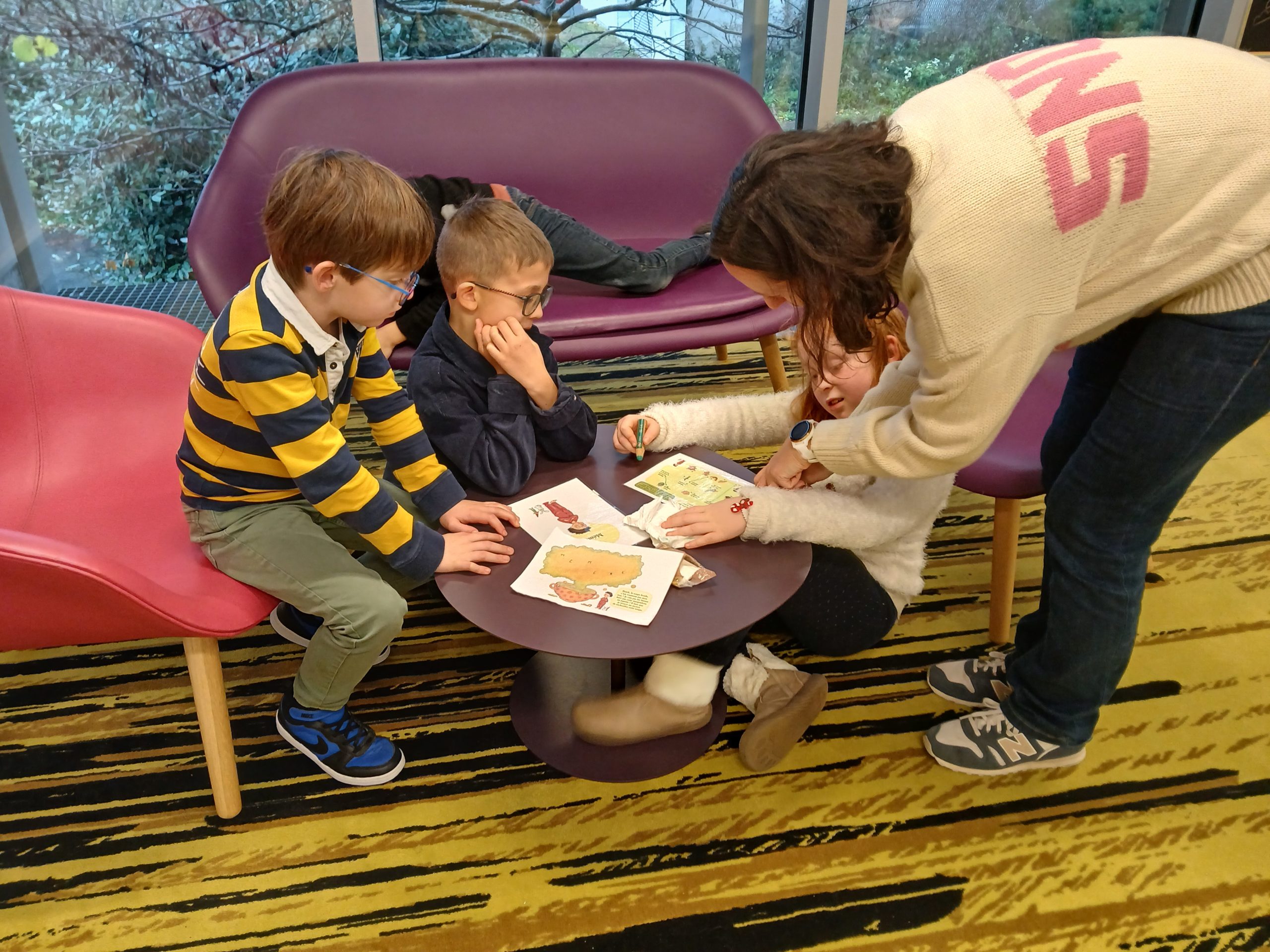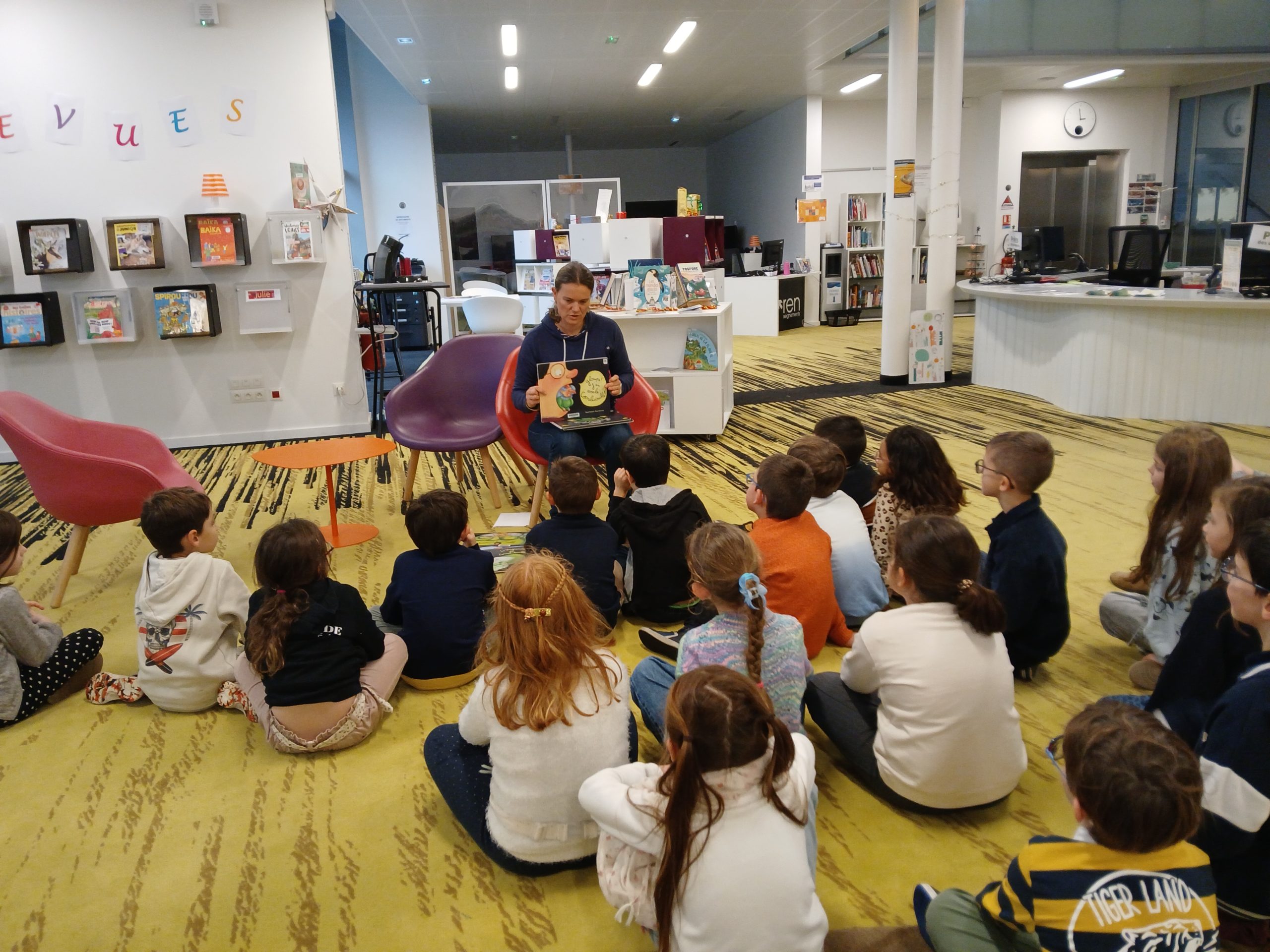 Les élèves de ce1B sont allés à la médiathèque le mardi 9 décembre 2025 à 15h00. Le parcours littéraire qui leur a été proposé par Pauline se partageait en trois temps. Pour commencer, ils ont écouté Pauline leur lire des histoires de la sorcière Cornebidouille ensuite ils ont participé à un Escape Game où ils devaient retrouver des indices dans les différents endroits de la Médiathèque afin de résoudre des énigmes. Et avant de partir, les enfants ont eu un petit temps plaisir pour choisir des lectures personnelles.